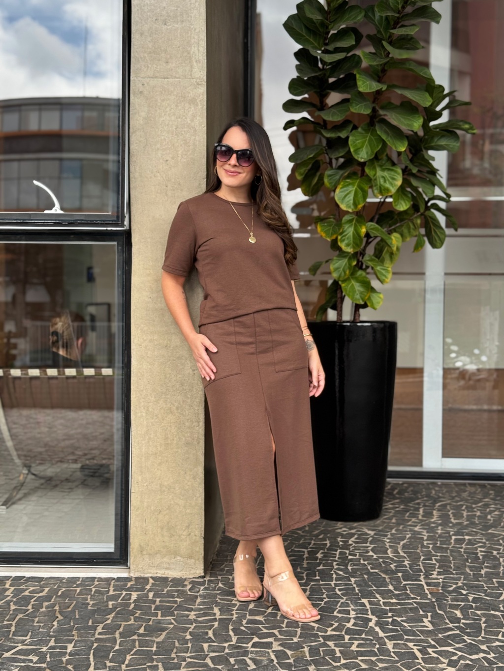 Para compor um look perfeito, uma camisetinha básica em moletom! Sem segredos, faz um look super estiloso, mais esportivo, mas com uma modelagem sofisticada que a gente ama! ;)