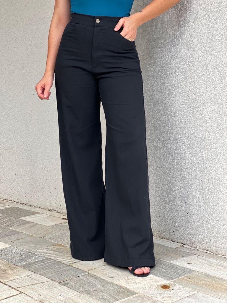 Aqui trazemos uma opção ainda melhor: escolhemos um tecido que imita jeans, mas é muito mais confortável. Molinho, leve e tem um toque delicioso! Os acabamentos também são de jeans, como o pesponto em linha caramelo e o botão escolhido. Modelagem impecável, acinturada com pernas amplas - cintura alta. Possui elastano na composição, se adequando melhor ao corpo. Possui bolsos e fechamento por zíper e botão.