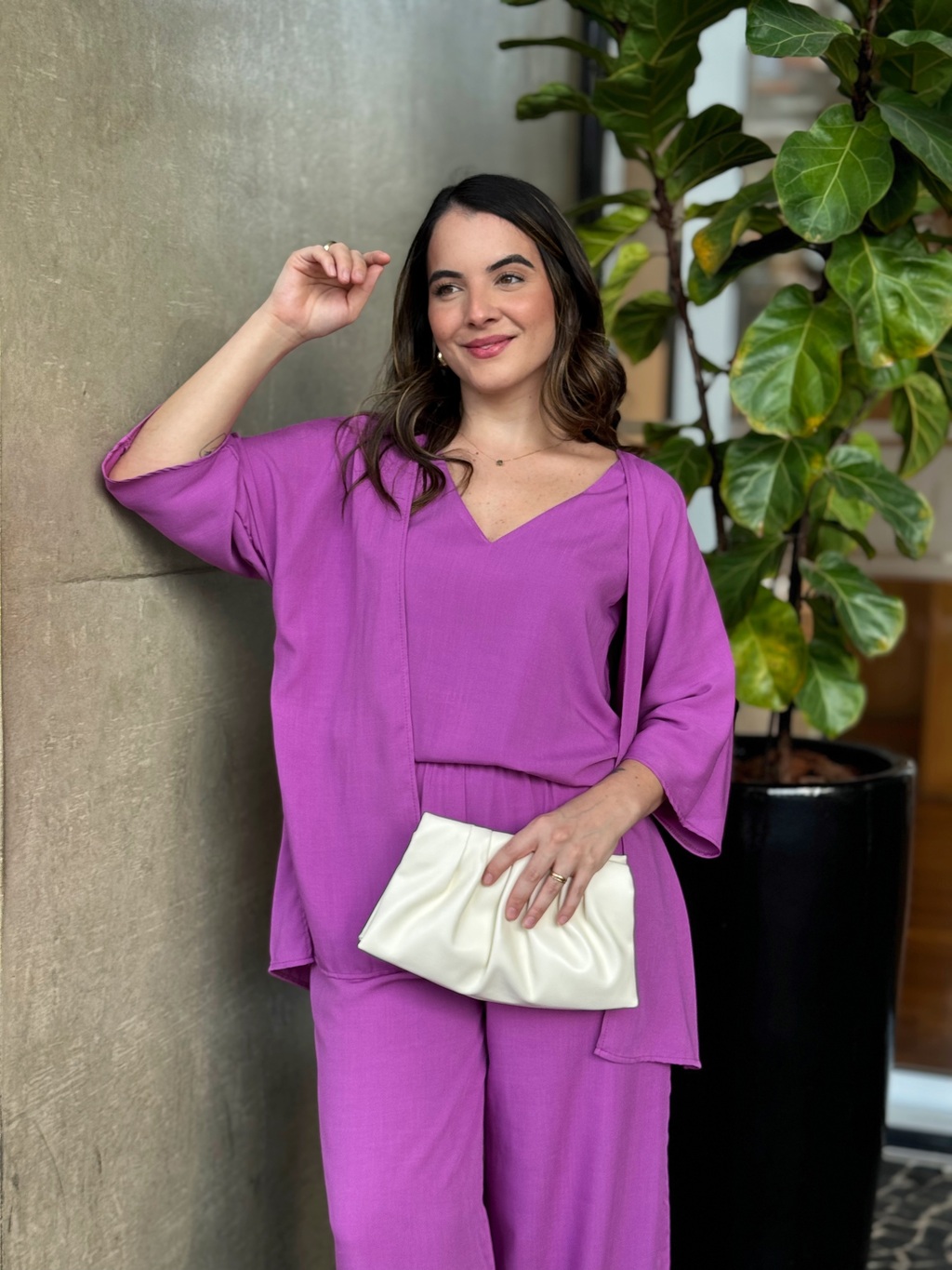 Confeccionado em Viscolinho, tem a modelagem mais sequinha, não tão ampla. Possui fendas nas laterais que dão um toque super especial.